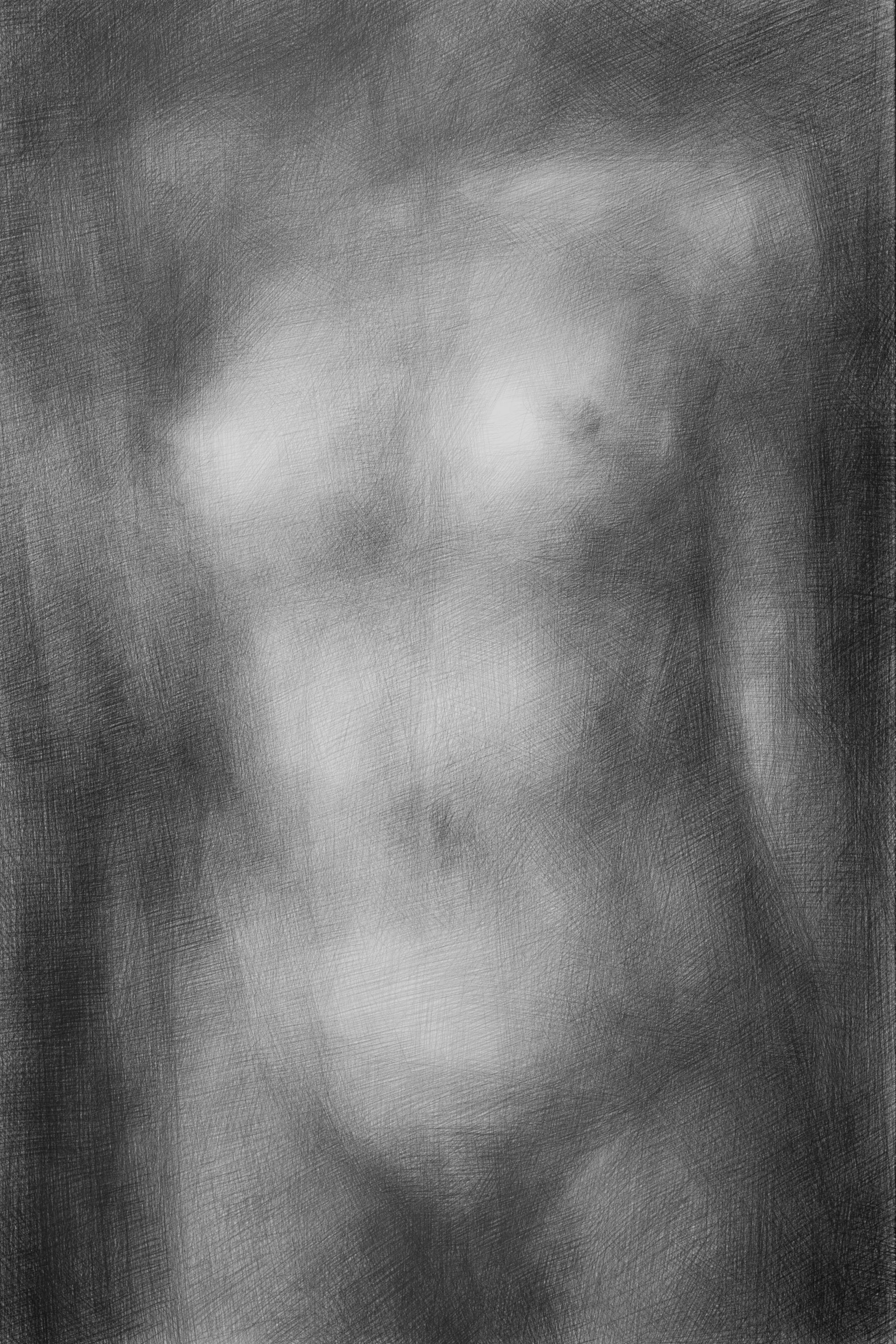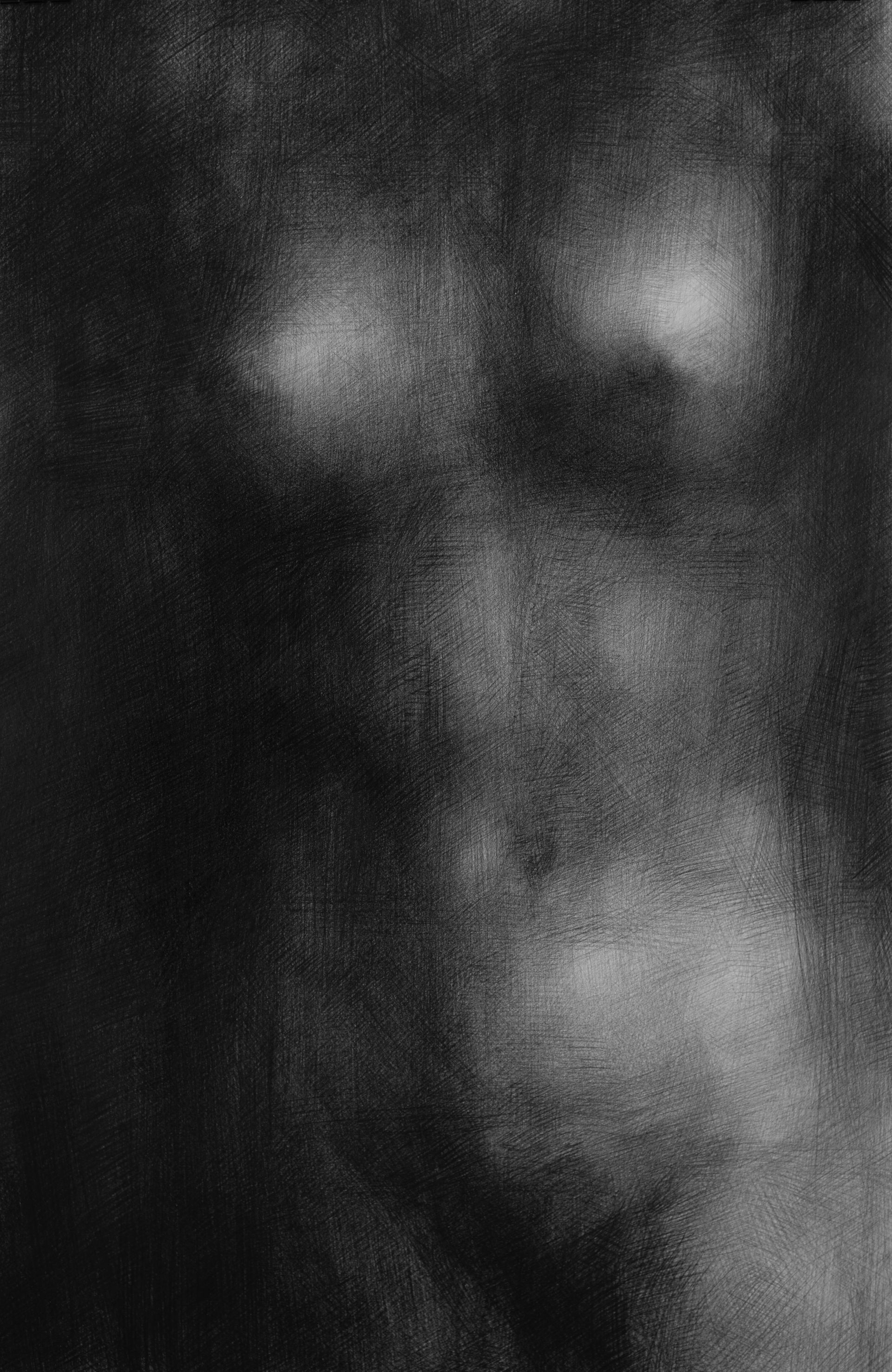 Je cherche ainsi à nuancer et à intensifier la pénombre, à creuser les noirs en superposant les traits, pour mener à l’intime, à une vision «nocturne» où le corps n’est pas exposé, mais se laisse deviner.